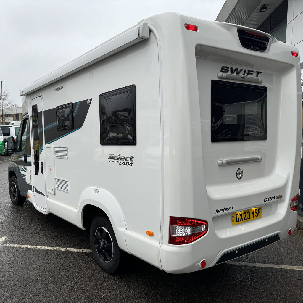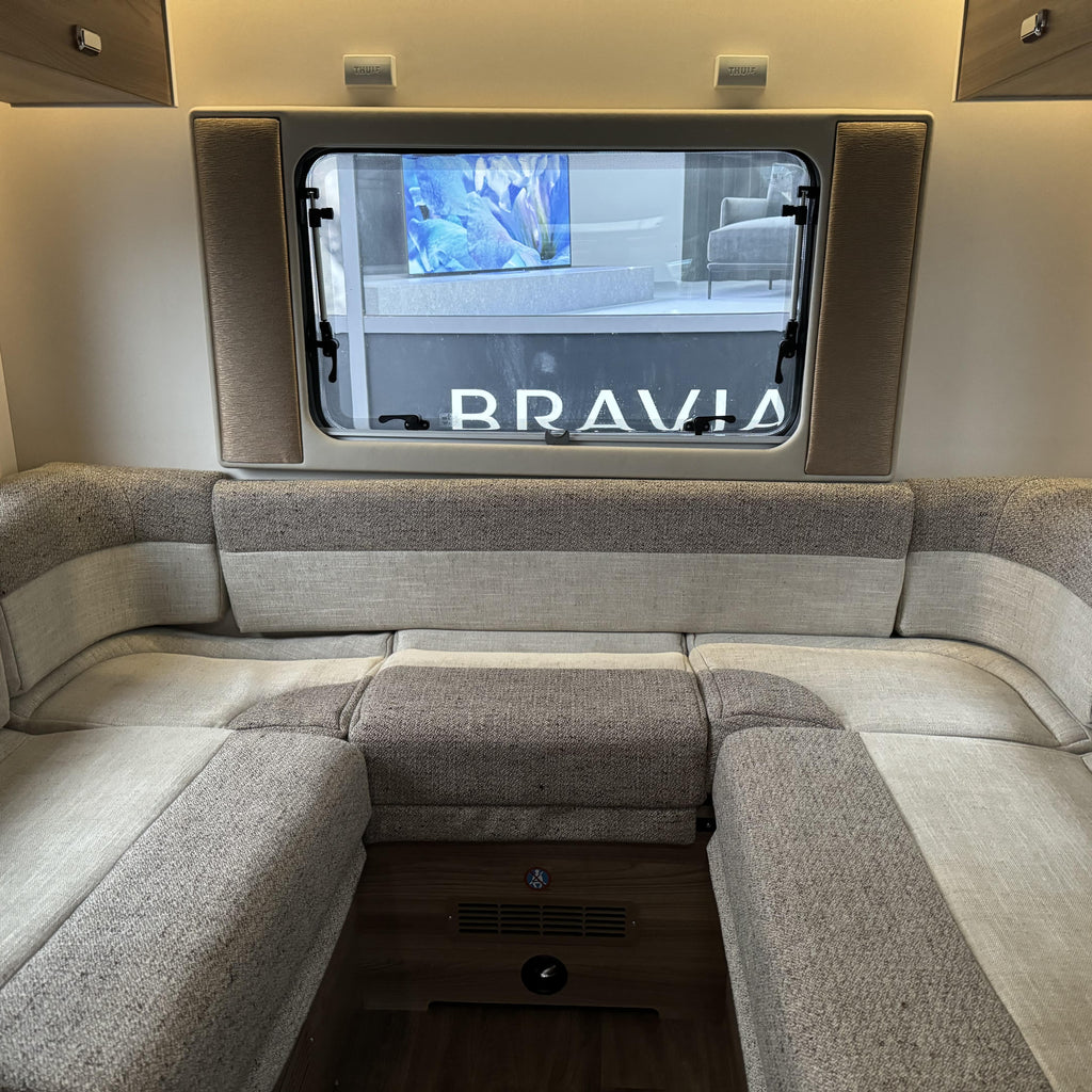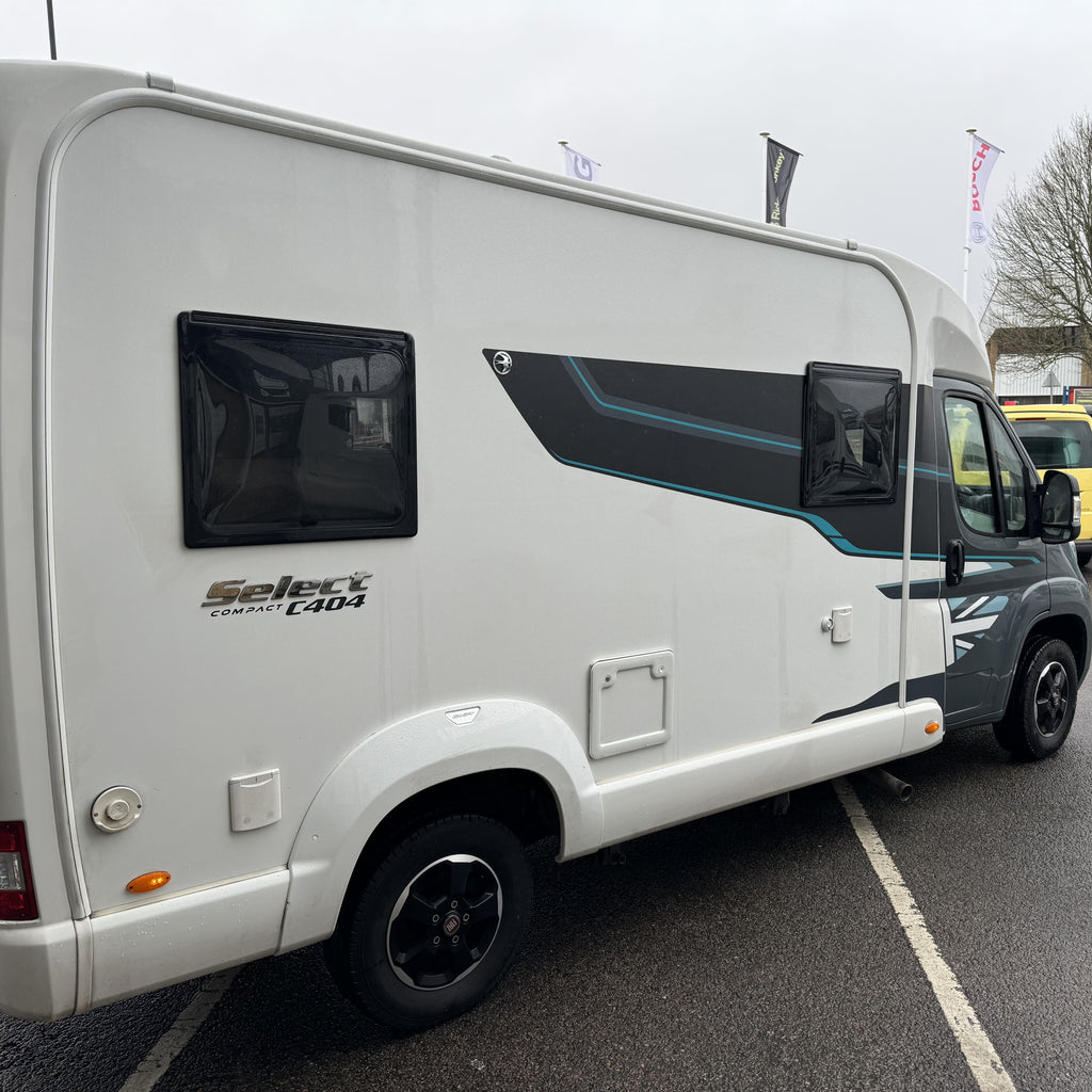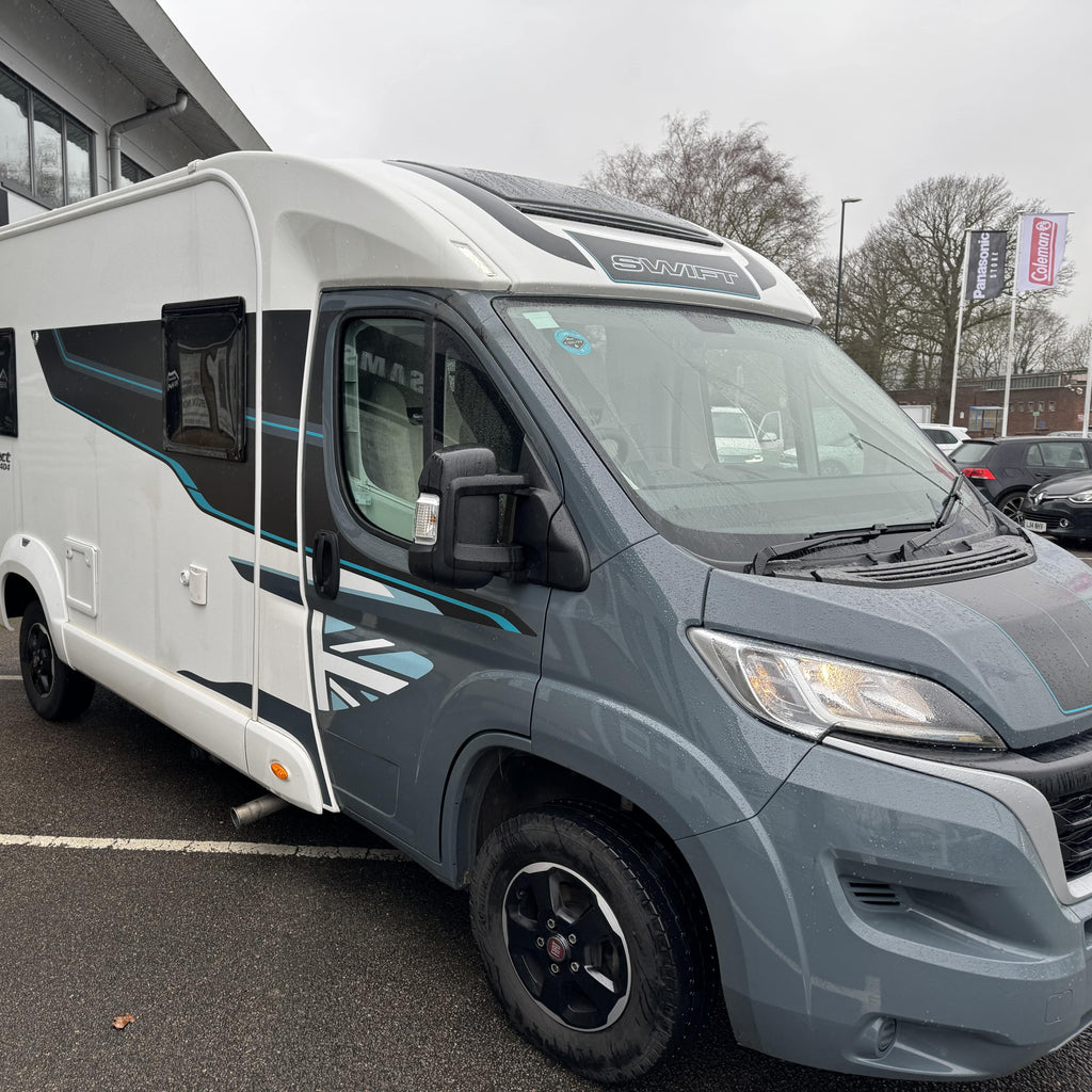 The Compact has two small double beds, one being a drop-down bed above the sitting area which is electronically controlled. The sitting area at the back of the van also pulls out to make a bed, really making the most of the space inside! Under the sitting area is where your storage is, along with some small above-head cupboards and one large one. This van has a full wet room with a toilet, basin and shower. The kitchen area has a microwave, 4-burner hob, oven, sink and large fridge with a small freezer compartment.