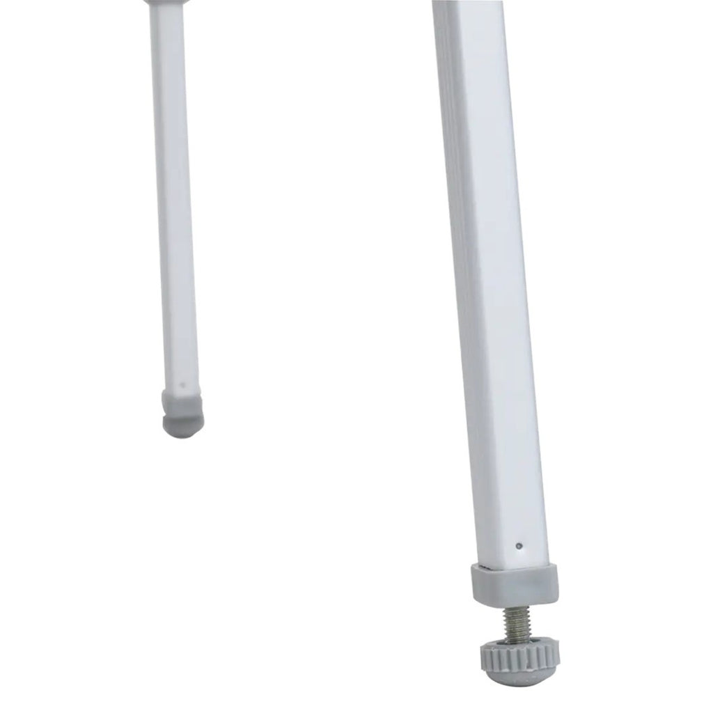 The table features telescopic legs that allow easy height adjustment between 49.5 and 70 cm, along with adjustable feet to help maintain stability on uneven ground. No assembly is required, supporting quick and straightforward setup.