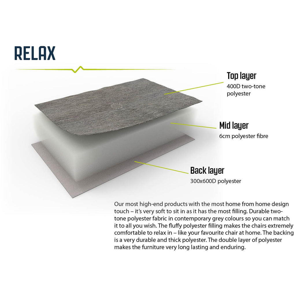 Perfect for relaxing after a day of outdoor activities, you’ll enjoy superb seating comfort in the Outwell Fremont Lake Sofa. Its well-padded seat and back are complemented by a smart and sturdy powder coated steel tube frame. There’s a mesh pocket at the back perfect for storage of your personal belongings.