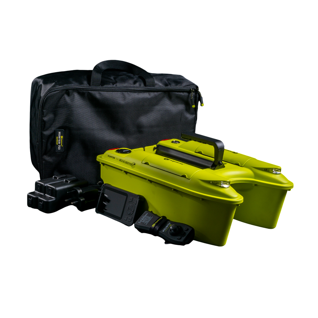The Hunter 750 is light in weight at just 2.5kg including two lithium polymer batteries. Its compact design is ideally suited for all anglers, although it really comes into its own for anglers fishing short sessions looking to drop a rig and bait in some of those harder-to-reach places, from canals to inland seas. The small size and low weight of the Hunter 750 means that it is not only easy to transport but is equally as simple to deploy, even for those who may want to use a bait boat but decide against it due to having to walk a long way with their gear.